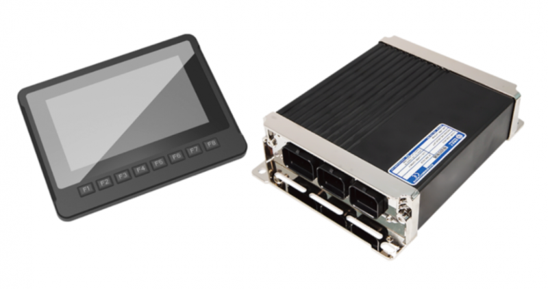 该电控系统为典型的总线型分布式应用,涉及设备的举升、下降、侧移、伸缩,行走、转向等机构的动作控制。控制系统中的控制器及IO模块用于采集系统的压力、温度、长度、角度等信号,根据设备工艺控制电机、液压阀的动作,从而实现对举升、下降、侧移、伸缩,行走、转向等机构的动作控制。显示屏主要用于显示电机、电池、传感器、操作手柄、电磁阀端口状态显示、以及故障显示与记录。
