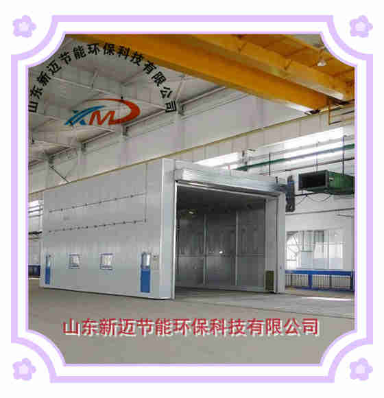 总之,整体移动喷漆房的设计目的是为了满足磨削或喷涂较大工件的需要。一般每套对应2-3个排气净化站。当哪个工位上的工件需要喷漆时,房间移动到那个工位,其他工位可以继续抛光。当室内的工件涂漆后,控制移动室移动到抛光工件工位。这种设计可以实现大型工件的不间断连续涂装。房屋为钢结构,房屋的立柱下有两个电动行走机构,行走机构沿地面轨道行走。移动房两端安装电动卷帘门。当房间行走时,门上升,当房间到达位置时,门着陆并关闭。门和行走机构由电气控制部分连锁控制。门升起后,房间可以移动和行走。