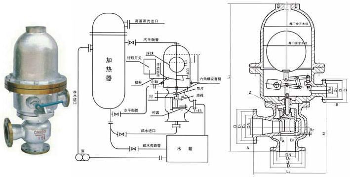 【 结构特点及工作原理 】 1、利用凝结水液位的变化而使浮球上升和下降,也可以手柄操作,从而驱动下部的启闭装置,开启和关闭,实现排水阻气的功能。 2、该阀随着凝结水液面上升,当浮球升到距罩盖底平面403mm时,阀门全开使冷凝结水大量排入水箱。当浮球下降113毫米后,阀门全关,冷凝水不能流出,使浮球稳定的限制在113-403毫米的空间范围内变化,从而使阀门达到只能排放空气和水及高温冷凝水,而阻止蒸汽泄漏的优越性。 3、外形尺寸较大,适用于较大背压力且不会泄漏蒸汽,排出的凝结水是接近蒸汽压力的饱和水,故有利于提高本阀门的设备热效率和二次蒸汽利用的节能特点。 |