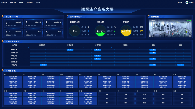包括钢筋绑扎,混凝土浇筑、智能张拉压浆、智能喷淋养护,智能台座管理、梁片自动定位、梁片运输跟踪、梁片质量溯源等,管控计划与进度。