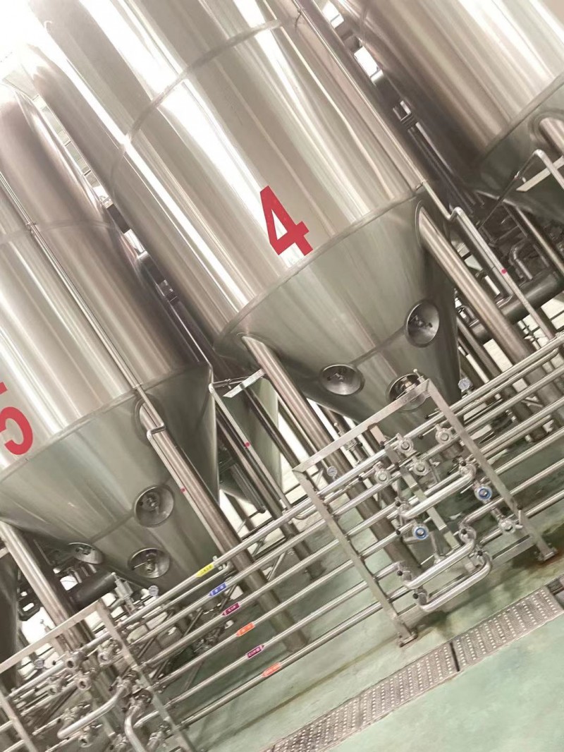 啤酒厂设备啤酒发酵罐,大型啤酒厂一般采用室外露天发酵罐配置,发酵罐顶部配备罐顶平台,发酵罐罐顶会配有罐顶装置;啤酒发酵是采用的酵母菌种,将采用酵母扩培系统以及酵母添加系统进行自动化处理;啤酒添加辅料时,还会配有啤酒稳定剂添加罐等配置组成