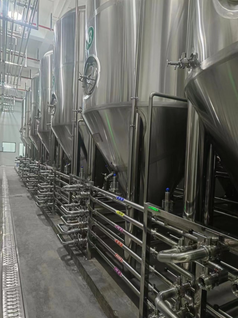 冷却:麦汁通过板式换热器,将麦汁冷却到工艺要求的发酵温度。