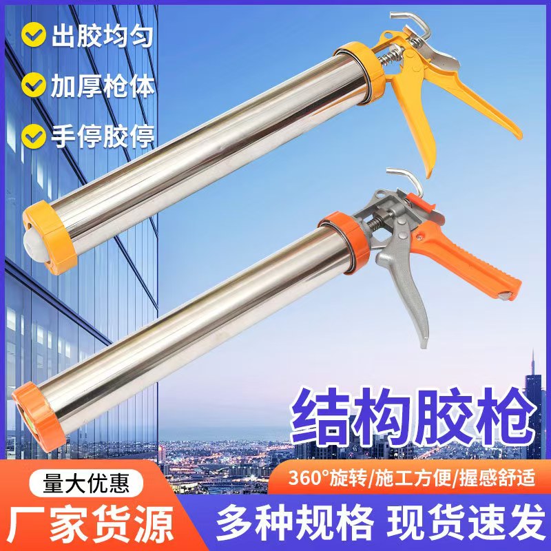 构造:主要由合金材质的枪身、扳机、推杆、胶筒固定装置以及轴承等部件组成。合金枪身坚固耐用,能承受较大的压力。扳机通过杠杆原理连接推杆,省力且便于操作。轴承则安装在推杆与枪身的连接处,可减少摩擦。