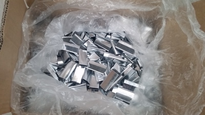 工厂生产销售与打包钢带、塑料打包带、塑钢带相配套的打包钢扣,有开扣式和封闭式2种。主要规格(按宽度)有12.7mm;16mm;19mm;25mm;32mm等等。产品可以根据客户的要求,进行镀铜或镀锌处理。各种型号的打包扣