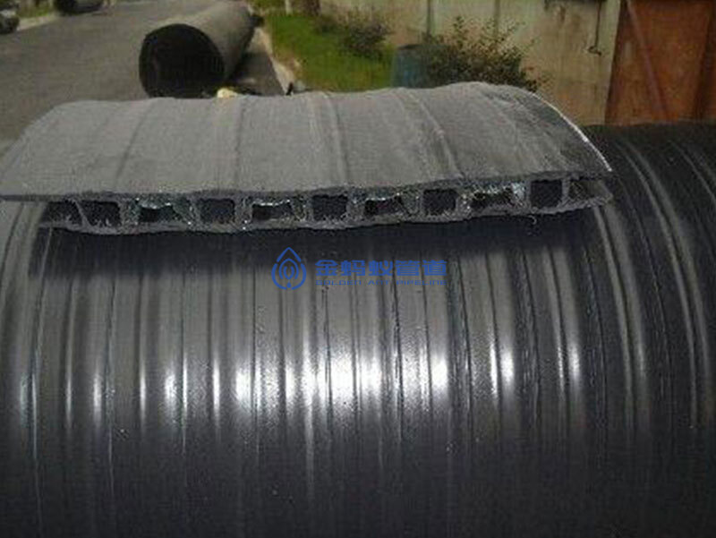 ③、结构性能优越:内镶镀锌钢带呈扁高型承载能力高,钢带与管壁柔性连接,避免钢带与塑料伸缩不一造成的管道开裂。管道壁厚均匀一致,性能一致不存在薄弱环节,因此,管壁性能均匀受力状态一致。