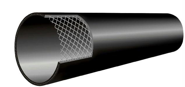 以包覆处理后的高强度钢丝连接缠绕成型的芯层为增强骨架,采用热熔胶、双抗料通过挤出成型方法复合成一体的管材。