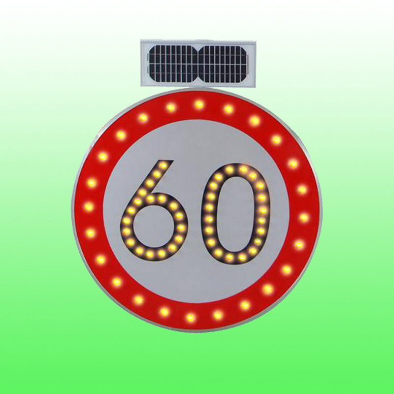 太阳能限速标志牌是以多晶硅太阳能板、蓄电池组件为能源,它利用太阳能板将白天的阳光转换成电能贮存于蓄电池中,当夜幕降临、视线昏暗或雨雾天气等视线不佳情况下,限速标志牌上的发光二极管自动启动闪烁,通过LED发出亮光来勾画图案轮廓,传达交通信息。