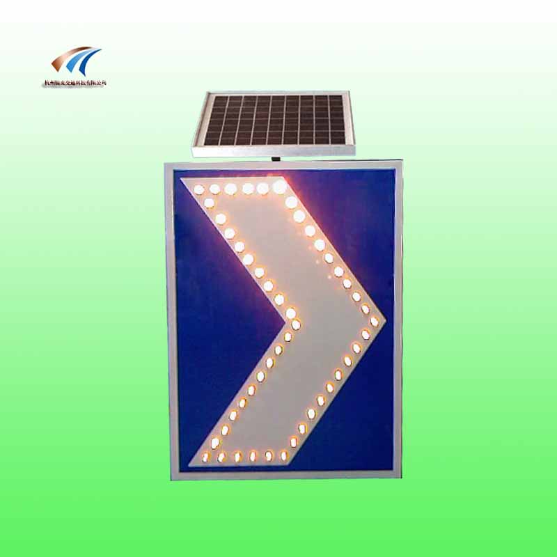 太阳能同步诱导标志是以单晶硅太阳能电池组件为能源,它利用太阳能电池板将白天的阳光转换成电能贮存于蓄电池中,当夜幕降临、视线昏暗或雨雾天气等视线不佳情况下,线性诱导标志牌上的发光二极管自动启动闪烁,通过LED发出亮光来勾画图案轮廓,传达交通信息。主动发光线性标志发出的光线特别明亮、醒目,具有强烈的警示作用。在无电源的高速公路、经常移动的施工现场及危险地段,这种可主动发光的交通标志显现出了强大的作用,其可视距离是以反光膜作为反光材料的标志牌的数倍,其动感效果也是普通标志牌所不可替代的警示效果。特别在现代的城市道路中,夜晚驾驶者很难迅速认清被淹没在霓虹灯光、广告灯箱中的传统交通标志,此时发光标志的主动发光性能显得尤为重要。