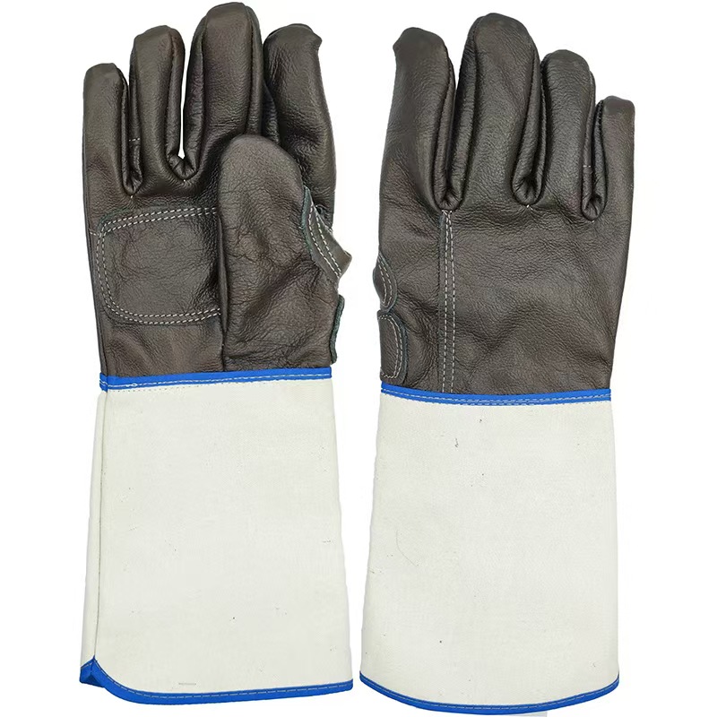 材质优势:选用头层牛皮(牛肩部或背部皮革),厚度达 1.2-1.5mm,纹理清晰、柔韧性强,表面经油鞣处理增强抗撕裂性,可承受 300℃以上瞬时高温(短期接触焊渣不穿透)。