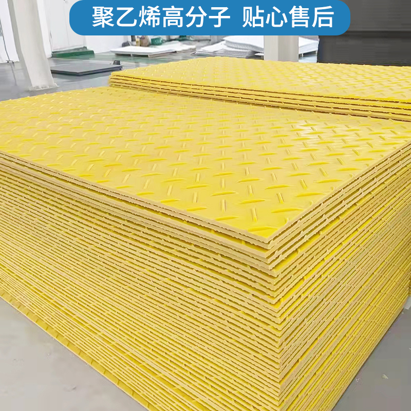 铺路垫板能够承受重型机械和车辆的反复碾压,为施工设备提供坚实的支撑。其独特的结构设计,使得压力能够均匀分散,避免了局部受力过大导致的地面塌陷。无论是大型挖掘机、压路机,还是满载货物的运输车辆,都能在铺路垫板上安全、稳定地行驶,大大提高了施工效率。