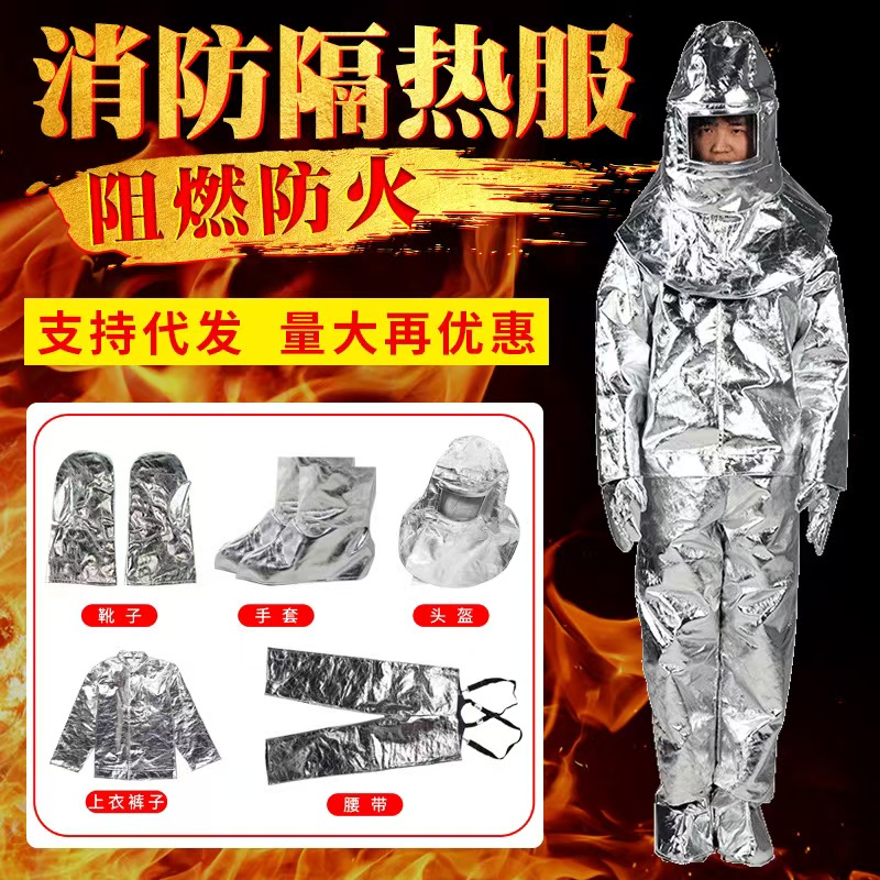 这款消防隔热服具备两种强大的防护规格,分别可承受 500 度和 1000 度的高温考验 。选用芳纶材质或铝箔复合阻燃织物精心打造,芳纶以其本身的高强度、高耐热性,在高温下依然能保持稳定结构;铝箔复合阻燃织物则凭借金属铝箔表面材料,高效反射辐射热,大大降低热量传递至人体的可能,有效抵御热流侵袭,为穿着者提供安全的热防护屏障 。