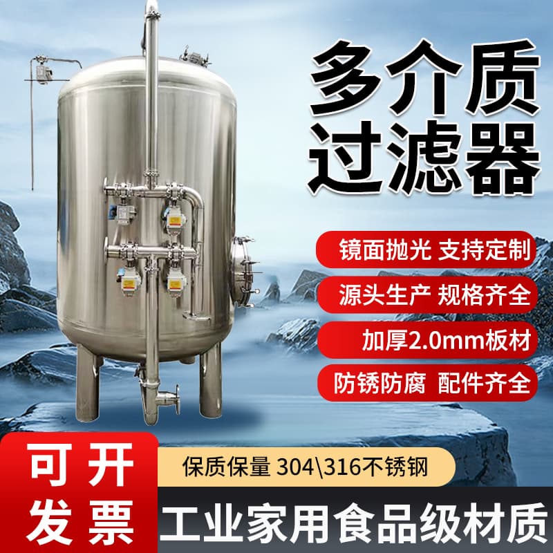 石英砂过滤器是一种压力式过滤器,利用过滤器内所填充的精制石英砂滤料,当进水自上而下流经滤层时,水中的悬浮物及粘胶质颗粒被净化,从而使水的浊度降低。