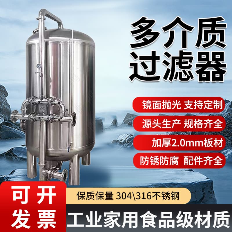 在水处理上使用的多介质过滤器,常见的有:无烟煤-石英砂-磁铁矿过滤器,活性炭-石英砂-磁铁矿过滤器,活性炭-石英砂过滤器,石英砂-陶瓷过滤器等。