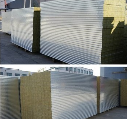 彩钢岩棉夹芯板厚度与普通岩棉复合板类似,但宽度多固定为950mm,长度可裁剪。