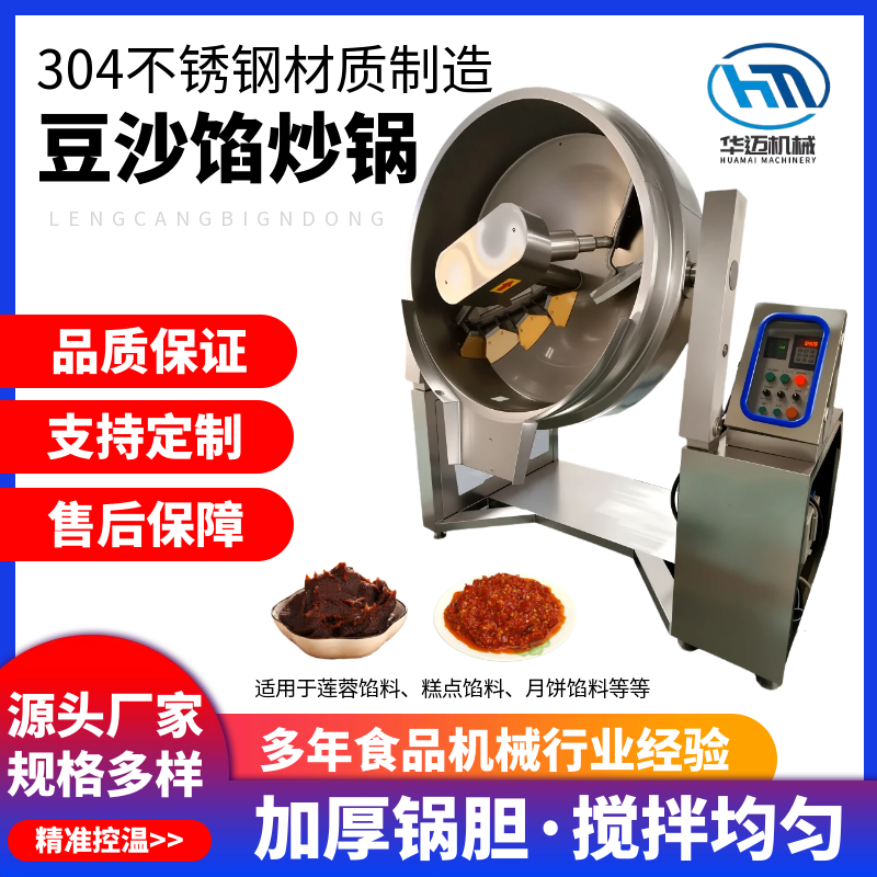 下搅拌炒锅是月饼加工厂必要的设备之一,是炒制高粘度馅料的不二之选,它的独特的搅拌装置可以保证馅料不会糊底、不粘锅,并且能够均匀加热。食品加工机械厂家Tel:156*0636-3332)