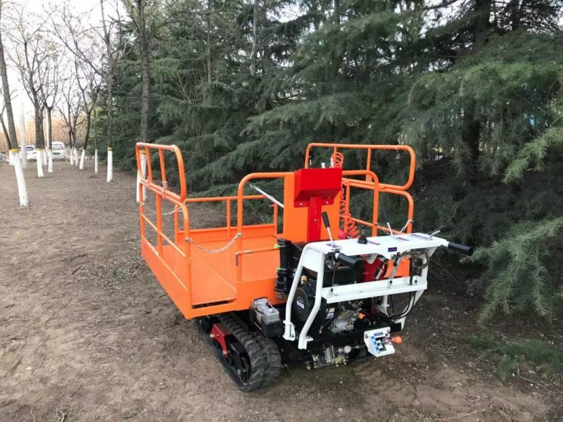 2.该平台配有空气压缩泵,可连接两把气动剪同时进行果枝修剪作业,并可当作运输搬运车辆,实现果品和生产物资的运输作业。