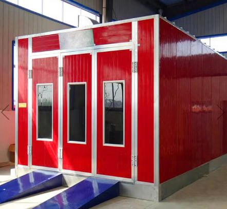 整个喷漆房为拼装式结构,房体采用插式保温夹心彩钢板,密封、保温性能好,房体装有工作门,方便工作人员进出;铝合金包边大门,门装有观察窗,可观察房内动态,选用低噪音,高风量风机,确保喷漆效果的性,喷漆时外部空气经过粗效、中效过滤后由风机送到气压分流层,再经过顶部过滤净化后,进入喷房内。房内空气采用全降式,以0.2-0.3m/s的速度向下流动,使喷漆后的喷雾微粒不能在空气中停留,而直接通过底部出风口被排出房外,加上喷房内具有一定的空气压力,外部灰尘无法进入喷房内,这样不断地循环转换,且送入的空气具有一定的压力,可在工件四周形成一恒定的气流以去除过量的油漆,从而较大限度的保证喷漆的质量。
