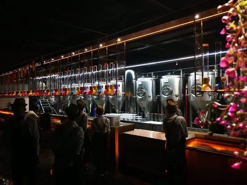 精酿陪酒生产时由初始的麦芽粉碎环节,在不同的罐内制备麦汁、原液,经糖化--过滤--煮沸--漩沉--发酵过程大概需要12-20天。发酵结束后即得到啤酒原浆,可直接饮用和售卖