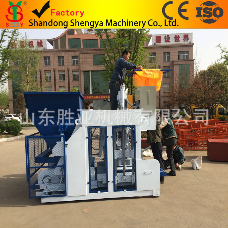 使用该机可生产不型号的空心砌块,标砖、植草砖等,该机适用于在水平水泥面上工作,成型一模后,将模箱升起,转动锣盘,通过链轮带动驱动轮向前移动,转弯时使用万向转向器,该机省工、省时,省托板,投资小、见效快。