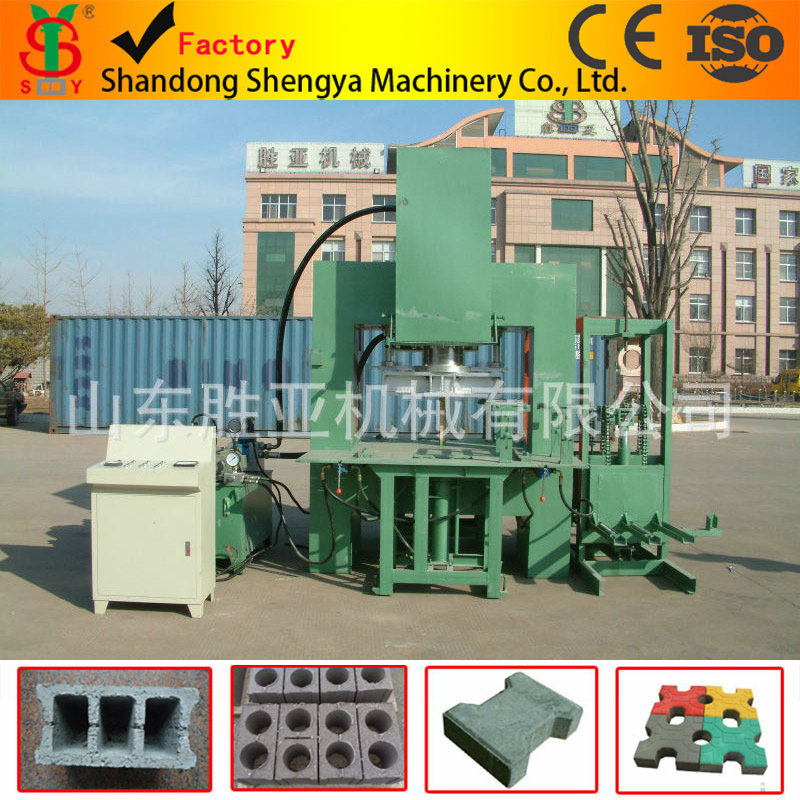 SY-3000型液压机成型机具有多功能,自动化程度高,生产速度快,最大压力达3000KN,配备输送带,储料斗自动上料,液压升降机自动卸砖,减轻工人劳动强度,提高生产效率,适用于生产各种大规格路沿石、植草砖、防撞栏,并可加配一套生产彩色路面砖机构,可生产各种规格路面砖。