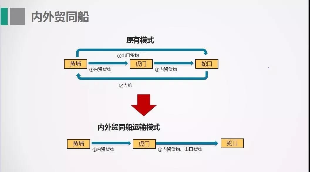 1.黄埔老港海关—黄埔海关驻沙田办事处—深圳蛇口海关之间内外贸同船运输业务。