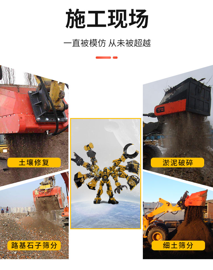 挖掘机破碎筛 土壤污染板结治理破碎筛分斗 移动式破碎筛分斗