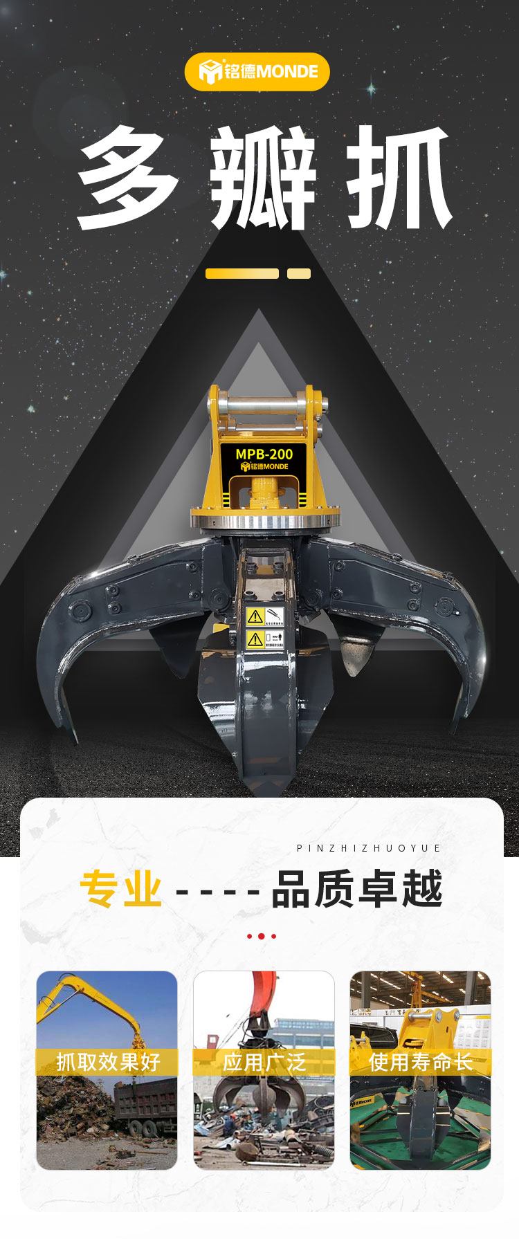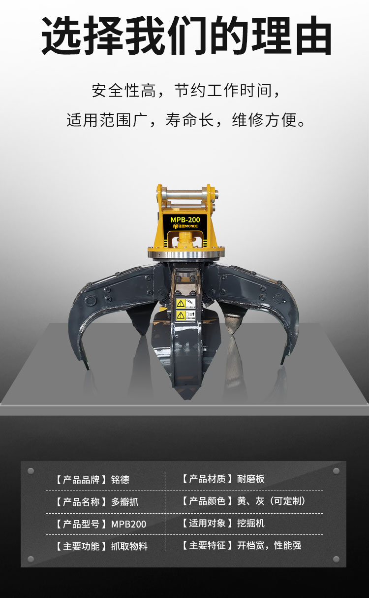 挖掘机多瓣抓 废钢生铁不规则物料装卸五瓣抓具 挖掘机多瓣抓