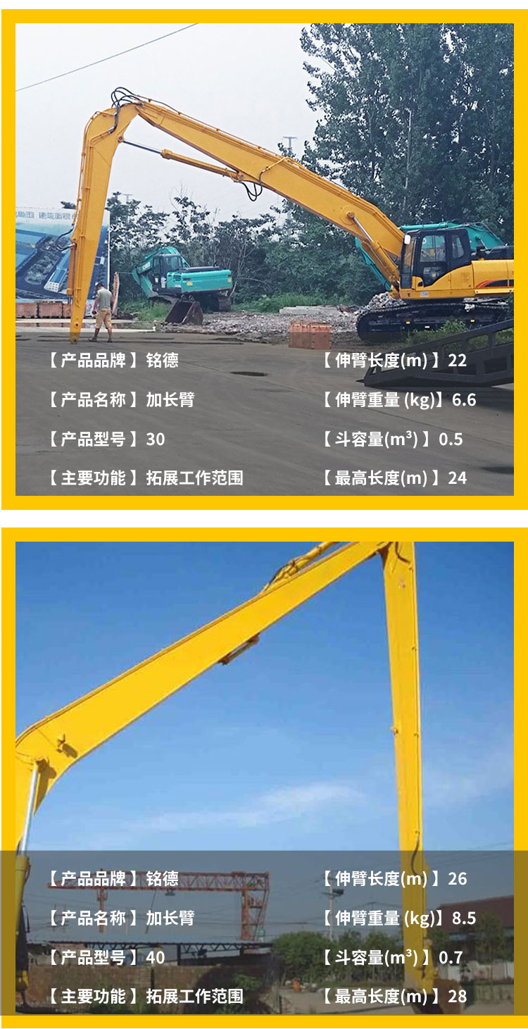 挖掘机加长臂 三一柳工二节三节臂 高空作业拆楼臂 打桩臂
