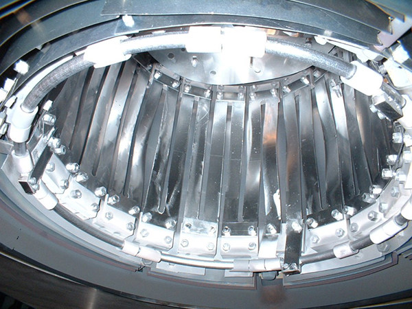 采用了管道镶嵌式进气喷头,使反应源在衬底表面均匀混合并反应,大大降低了预反应的发生。