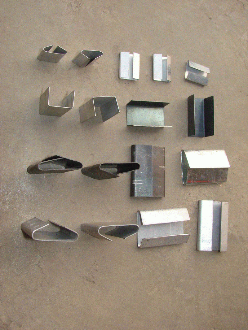 工厂生产销售与打包钢带、塑料打包带、塑钢带相配套的打包钢扣,有开扣式和封闭式2种。主要规格(按宽度)有12.7mm;16mm;19mm;25mm;32mm等等。产品可以根据客户的要求,进行镀铜或镀锌处理。