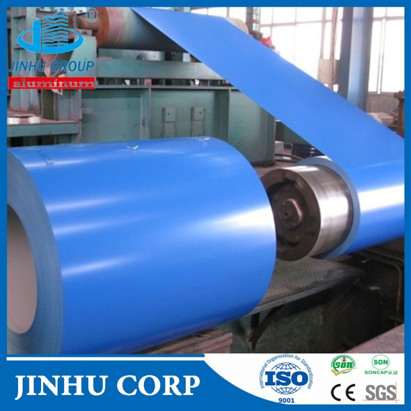 彩涂铝卷涂层分为: 聚脂涂层铝卷(PE),氟碳涂层铝卷(PVDF). 经过对铝板的表面多次烤涂形成的聚酯涂层能形成牢固附着的连续固态薄膜具有保护装饰特性。是一种抗UV紫外线涂层,聚酯树脂是采用主链中的含酯键的高分子聚合物为单体,添加醇酸树脂,根据光泽度又可分亚光和高光系列。具有良好的光泽度和平滑性,也可以增加层次感和立体感。能保护物件暴露在大气中,受紫外线照射、风吹、雨淋、霜雪冰冻的袭击;因温差、冻融循环、腐蚀性气体和微生物的作用,涂层能起保护作用。尤其适用于室内装饰和广告板用。