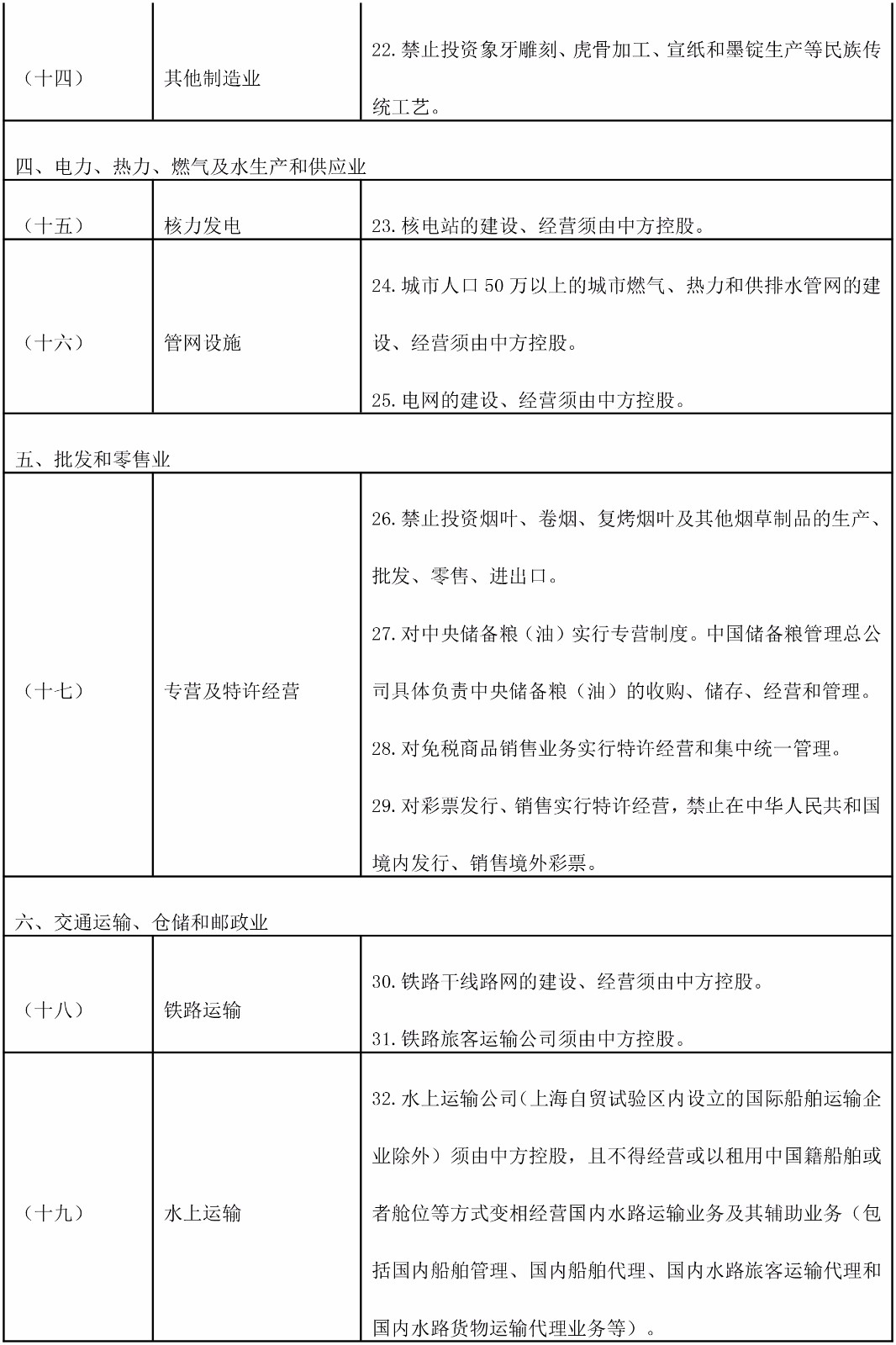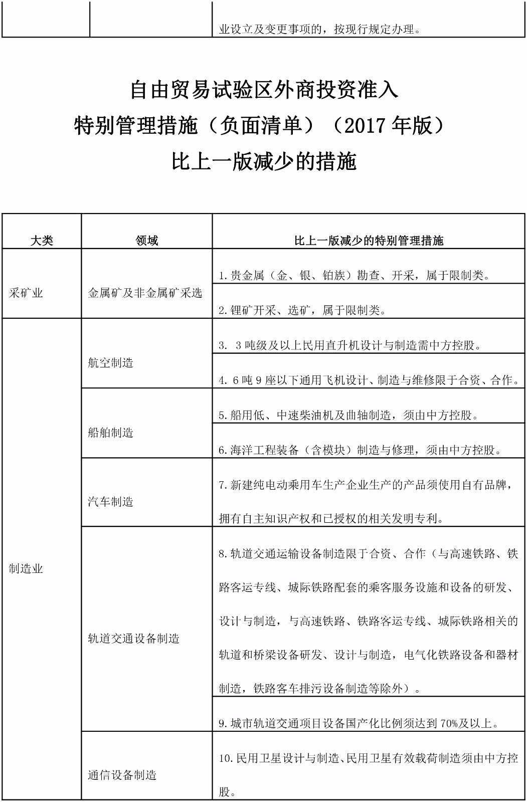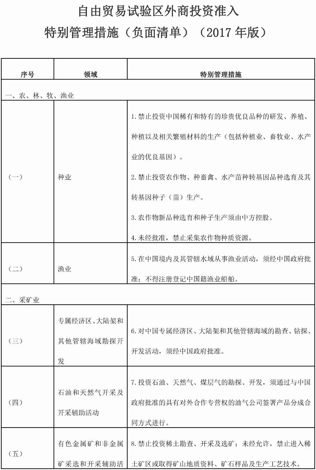 《自由贸易试验区外商投资准入特别管理措施(