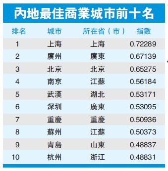 福布斯中国發布「中国大陆最佳商业城市排行榜」,共有100个城市入选。其中,上海、广州、北京位列前三。