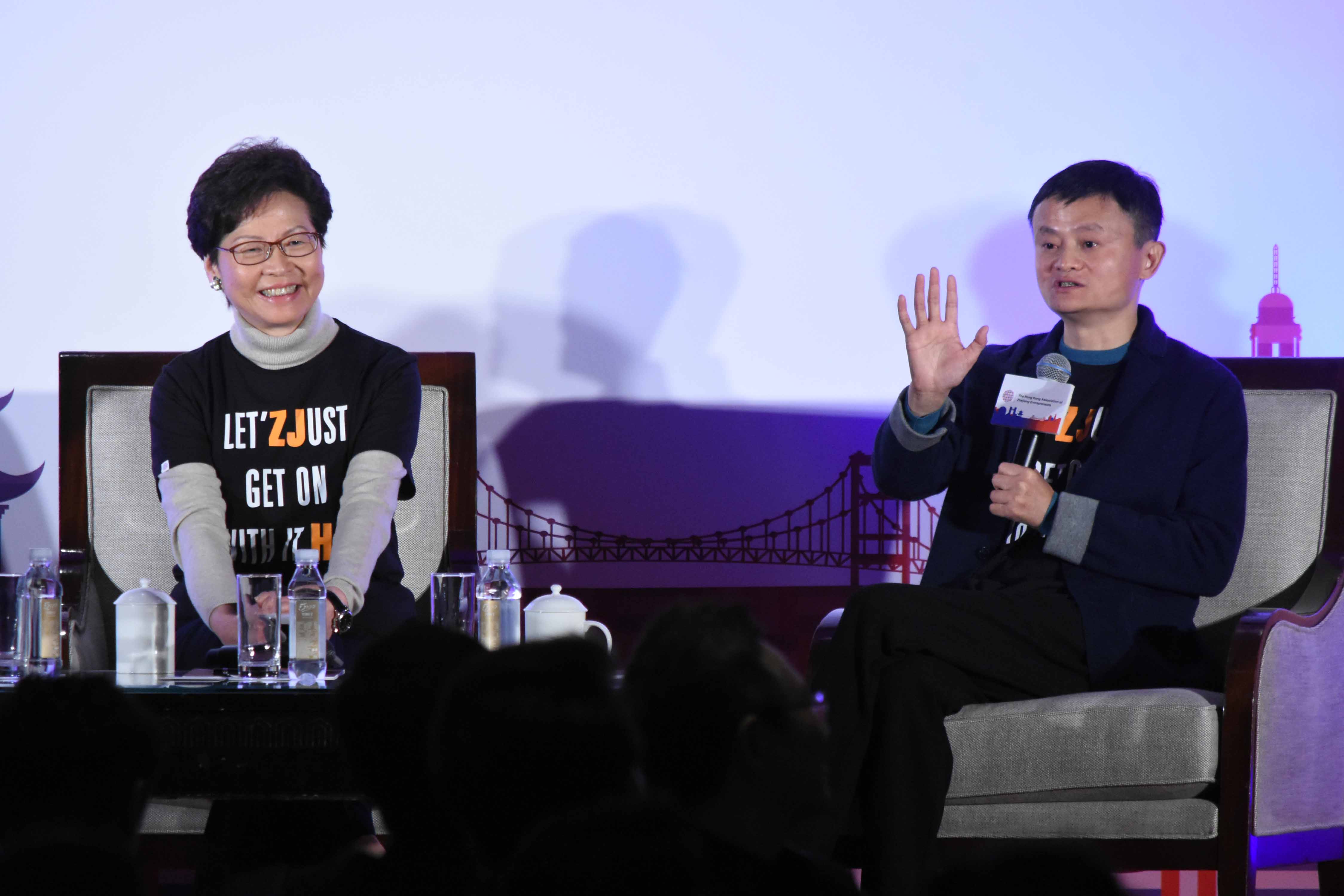 马雲与林郑月娥的对谈是活动的一大重头戏。林郑月娥表示,《施政报告》内说得最多的是创新,不但科技要创新,任何範畴都要创新,政府行为也要创新,担当「促成者」和「推广者」的角色,迎接海内外不同企业来港發展。她指出,港交所启动「同股不同权」机制,迎接新经济企业,期望阿里巴巴能重回香港上市。
