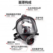 使用与维护:佩戴时由下巴处向上佩戴,再适当调整头带,戴好后用手掌堵住滤毒罐进气口用力吸气,面罩与面部紧贴不产生漏气,则表明面具已佩戴气密。使用后应擦尽各部位汗水及脏物,必要时可用水冲洗面罩部位,滤毒罐部分也要擦干净。在具有传染性质病毒环境使用后,面罩及滤毒罐可用 1% 过氧乙酸消毒液擦拭、清洗消毒,必要时面罩可浸泡在 1% 过氧乙酸消毒液中,但滤毒罐不可浸泡,以防进水失效。面具经消毒液消毒后,应用清水擦拭,晾干后再用。