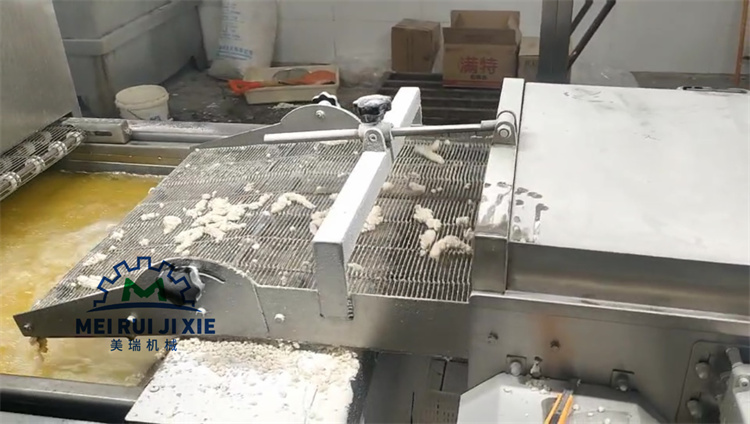香酥鱼小黄鱼上浆裹粉油炸生产线可运用各种粉料对产品的表面进行充分裹涂,可裹涂禽类、海鲜、肉类和蔬菜等产品,设备运行稳定、粉料更换快、清洗便捷。裹粉机使用的粉料必须干燥,使用前要检查确保机身内部无积水,如果内部潮湿粉料会黏连网带导致撒粉不均匀、影响裹粉效果,如果粉料结块严重还会造成网带拉长变形,在实际生产过程中必须要重视。