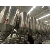 啤酒厂设备啤酒发酵罐,大型啤酒厂一般采用室外露天发酵罐配置,发酵罐顶部配备罐顶平台,发酵罐罐顶会配有罐顶装置;啤酒发酵是采用的酵母菌种,将采用酵母扩培系统以及酵母添加系统进行自动化处理;啤酒添加辅料时,还会配有啤酒稳定剂添加罐等配置组成